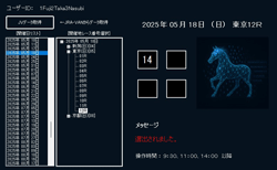 - このお支払いおよびその事故などなど一切のお取引上の問題につきましてはJRA-VANでは対応・保証は行っておりませんのでご注意ください。(くわしくはご利用上の注意をご覧ください)