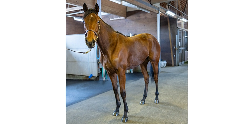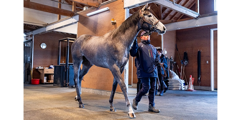 こちらに来た当初はかなり緩さがあったのですが、へこたれることなく順調に進められ、厩舎の中で1番変化があった馬だと思っています。3月に移動する馬と、動きに関しては遜色ありません。気持ちが強い面はありますが、オンとオフが利いています。夏のデビューを目指しています。