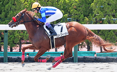 好スタートを切りハナへ。1馬身ほどのリードを取り、マイペースで引っ張った。直線に入ってからじわじわとリードを広げ、6馬身の差をつけて逃げ切った。同日の3歳以上・1勝クラス(8レース)と同じ勝ち時計をマーク。タイムランクは★10だ。