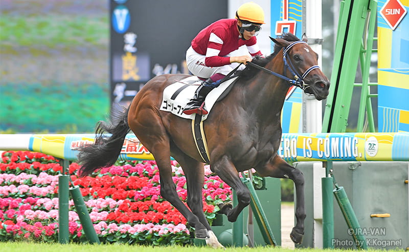 24年8月25日(日)メイクデビュー 新潟芝1800m、2番人気1着、1分49秒7(良)。父キズナ、母ゴーマギーゴー。美浦・手塚貴久厩舎。