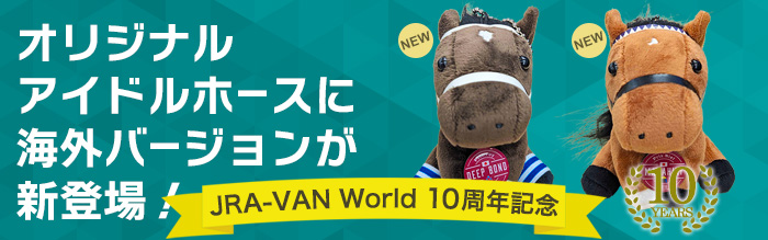 JRA-VAN ver. World10周年記念で製作したオリジナルのアイドルホースです。日本国旗、勝負服が描かれている特製チャーム付き♪