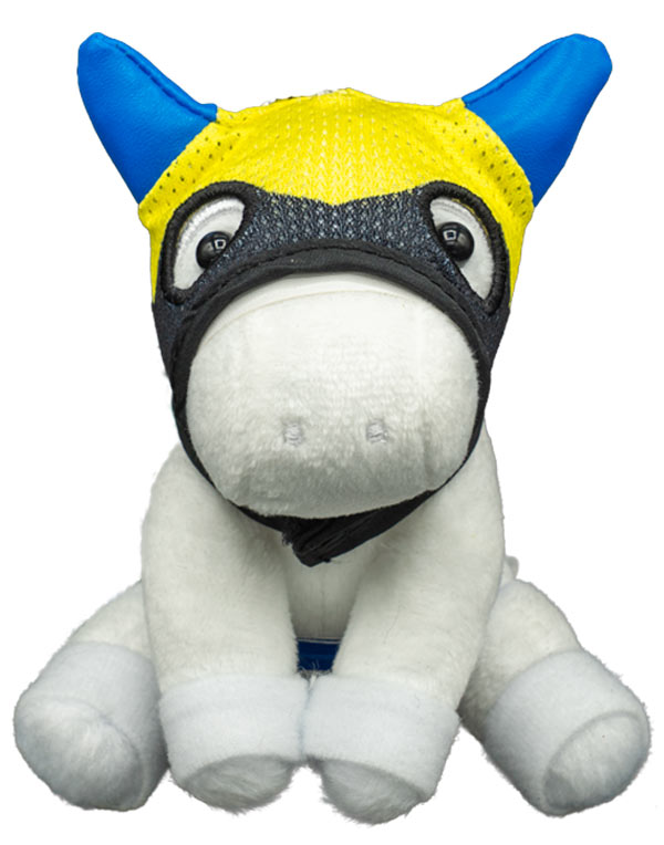パドックアイのリリースを記念して製作したオリジナルのアイドルホースです。着脱できる勝負服デザインのメンコ付き♪