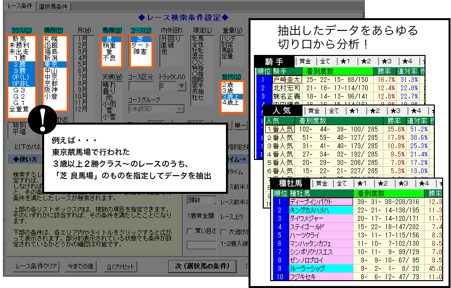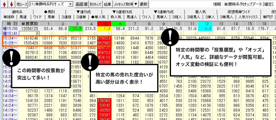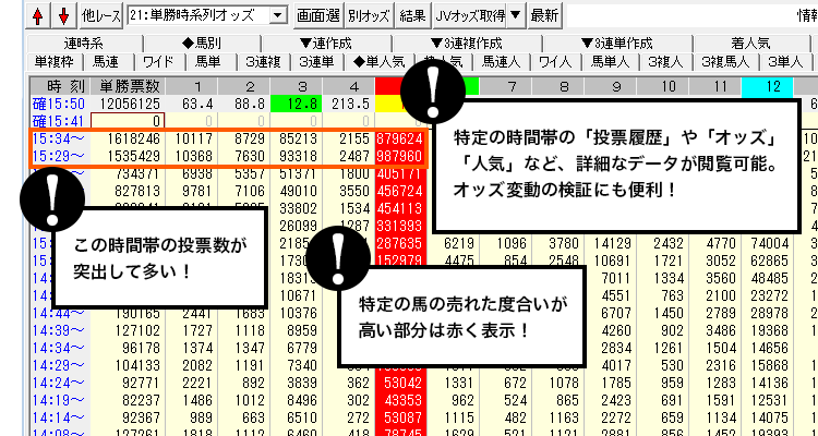case.1「単勝馬券への大量投票があった馬を調べたい」