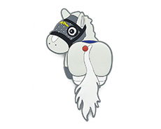 アイドルホースのイラストをデザインしたラバーマグネットです。ラバーの下部分を曲げるとフックとして使用できます。