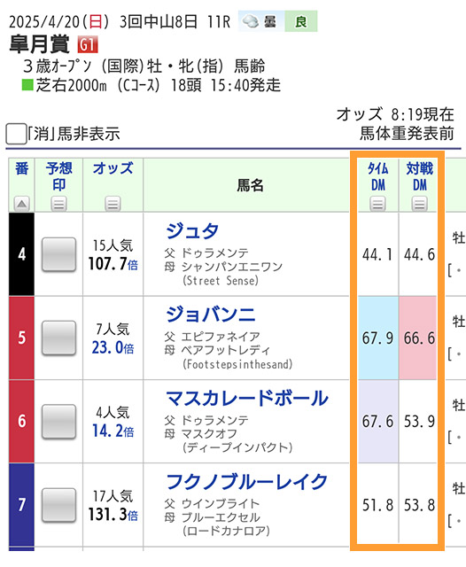 走破速度を予測するタイムDMと競走馬の勝敗を予測する対戦DMの2種類があります。