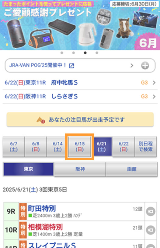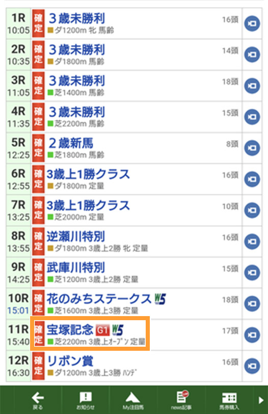 レース名をタップ。