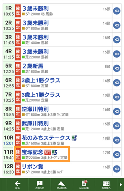 レースをタップ。