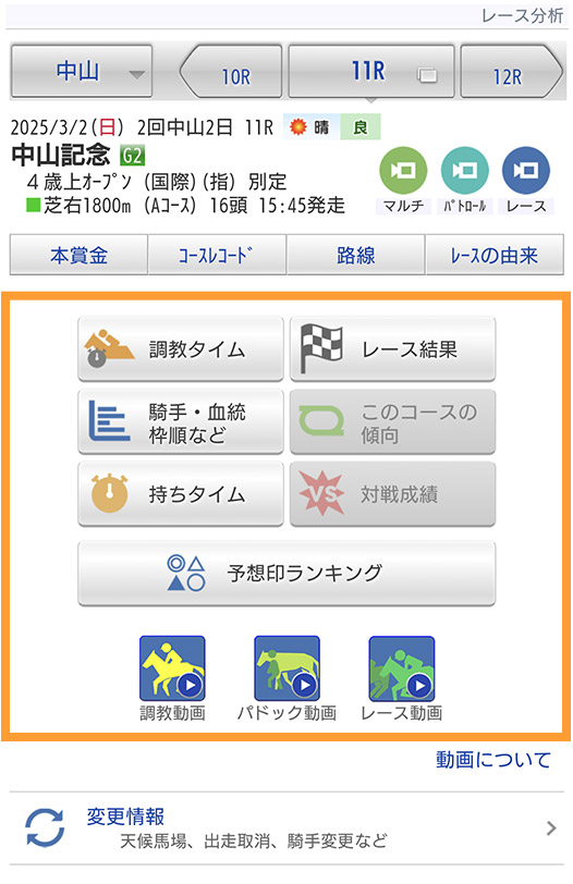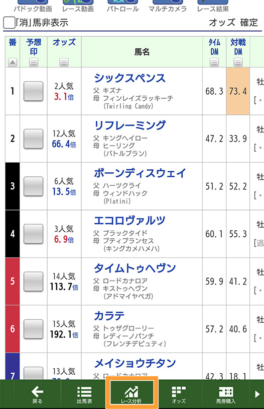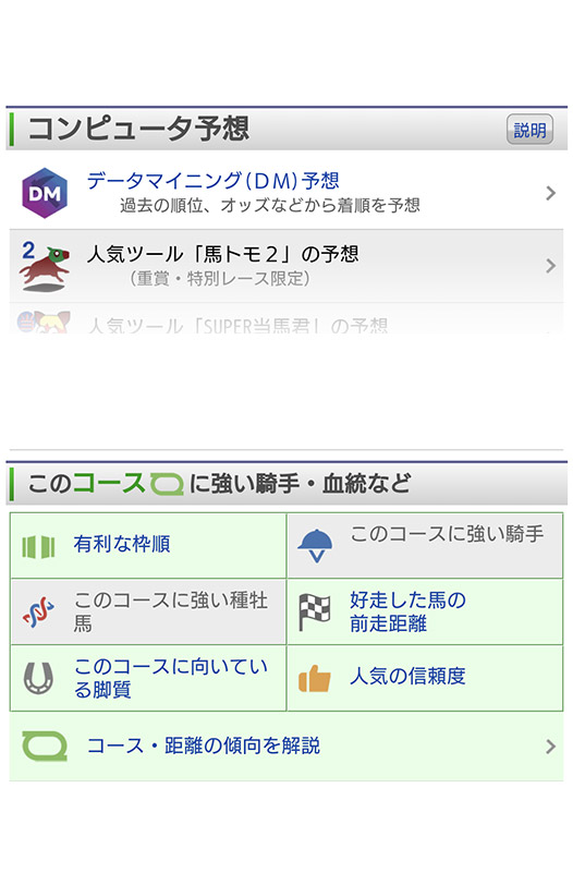 下にスクロールすると、コンピュータ予想やコースの傾向も見ることができます。