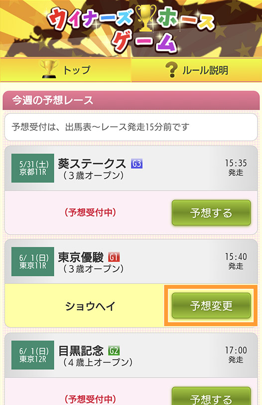 発走15分前までは予想を変更できます。