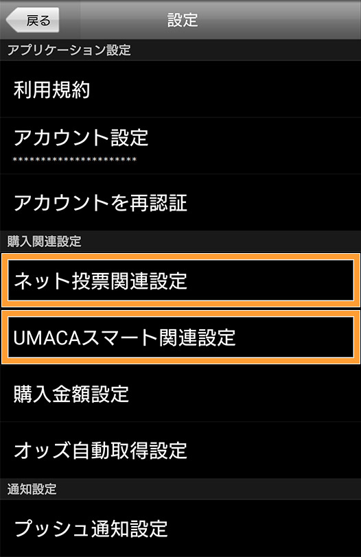 設定からネット投票またはUMACAスマートの設定をしておきます。